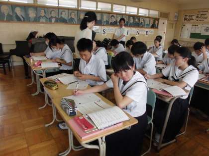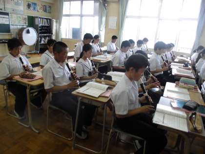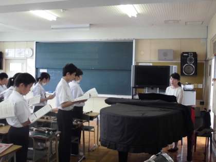 昨日、音楽の研究授業を行いました。「旋律のまとまりと構成を感じよう」という単元の中で、「曲の構成を活かして、演奏の仕方を工夫しよう」という学習課題のもと、「主人は冷たい土の中に」という曲を取り上げて学習しました。生徒は、課題を解決するため、自分で考え、グループで話し合いました。積極的に授業に取り組む姿が素晴らしかったです。また、歌やリコーダーもとても上手でした。先生は、生徒のよさをほめたたえ、熱心に授業を行っていました。