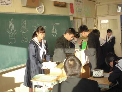 1月7日より、3学期の学校生活が始まりました。朝は係の生徒が提出物を集め、その後、朝読書に取り組み、1日の学校生活がスタートします。2年生は、本日の1時間目に学年集会を行い、各先生から3学期の生活にどう送るかについてお話がありました。生徒は、集中して話を聴くことができました。最後に、総合の時間に、進路学習の一環として「上級学校調べ」に取り組むことを生徒に伝えました。3学期も、生活リズムを整えて、授業・給食・部活動・家庭学習などの活動に取り組んでほしいものです。