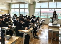 体育の授業では、ダンスによる表現活動を行っています。本時では、前の生徒の動きに合わせて、走ったり、止まったり、跳んだり、転がったりと様々な動きをしました。どの生徒も元気に体育館中を動き回っていました。ダンスの発表会に向けて、これからたくさん練習していきます。
