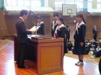 校長先生からのお話では、2年生の自然教室、3年生の修学旅行について、「教室では味わえない友人のいいところ、自然などの学習を意義あるものにしてほしい」とお話がありました。